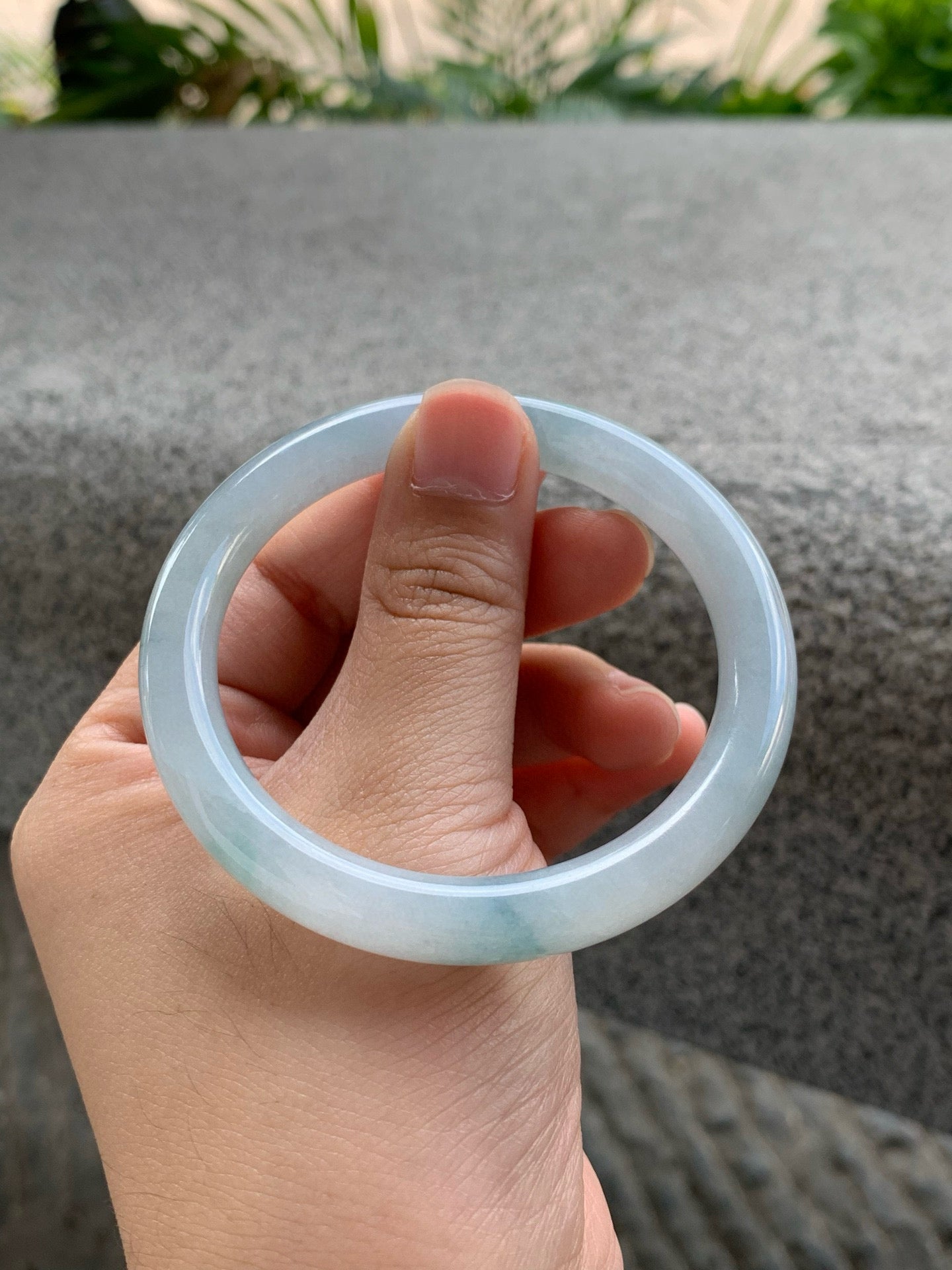 Yuanjiu Jewelry presents a natural "Floating Floral" jadeite bracelet, crafted from jadeite with innate floral inclusions. The bracelet features a translucent background where natural ink-toned patterns float like delicate brushstrokes in a Chinese ink painting, creating an elegantly poetic visual effect. Symbolizing natural beauty and artistic charm, these flowing patterns blend classical elegance with modern artistry. The bracelet is polished to a smooth, comfortable finish, making it ideal for those who appreciate literary and artistic style. Whether worn daily or for special occasions, it adds a touch of distinctive cultural refinement.