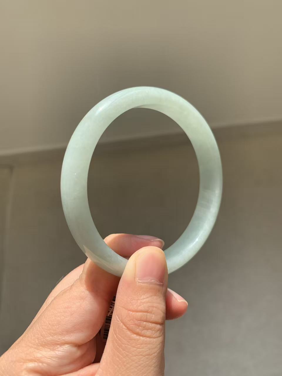 Yuanjiu Jewelry presents this natural light blue jadeite bangle, crafted from elegant light blue jadeite known for its soft, lake-like hue and exquisite translucency. The smooth, polished surface showcases the stone's fresh and delicate tone with a luminous clarity. With its minimalist yet sophisticated design, this bangle adds an elegant beauty to your wrist, perfect for both daily wear and special occasions. It embodies a harmonious blend of Eastern poetic charm and contemporary style.